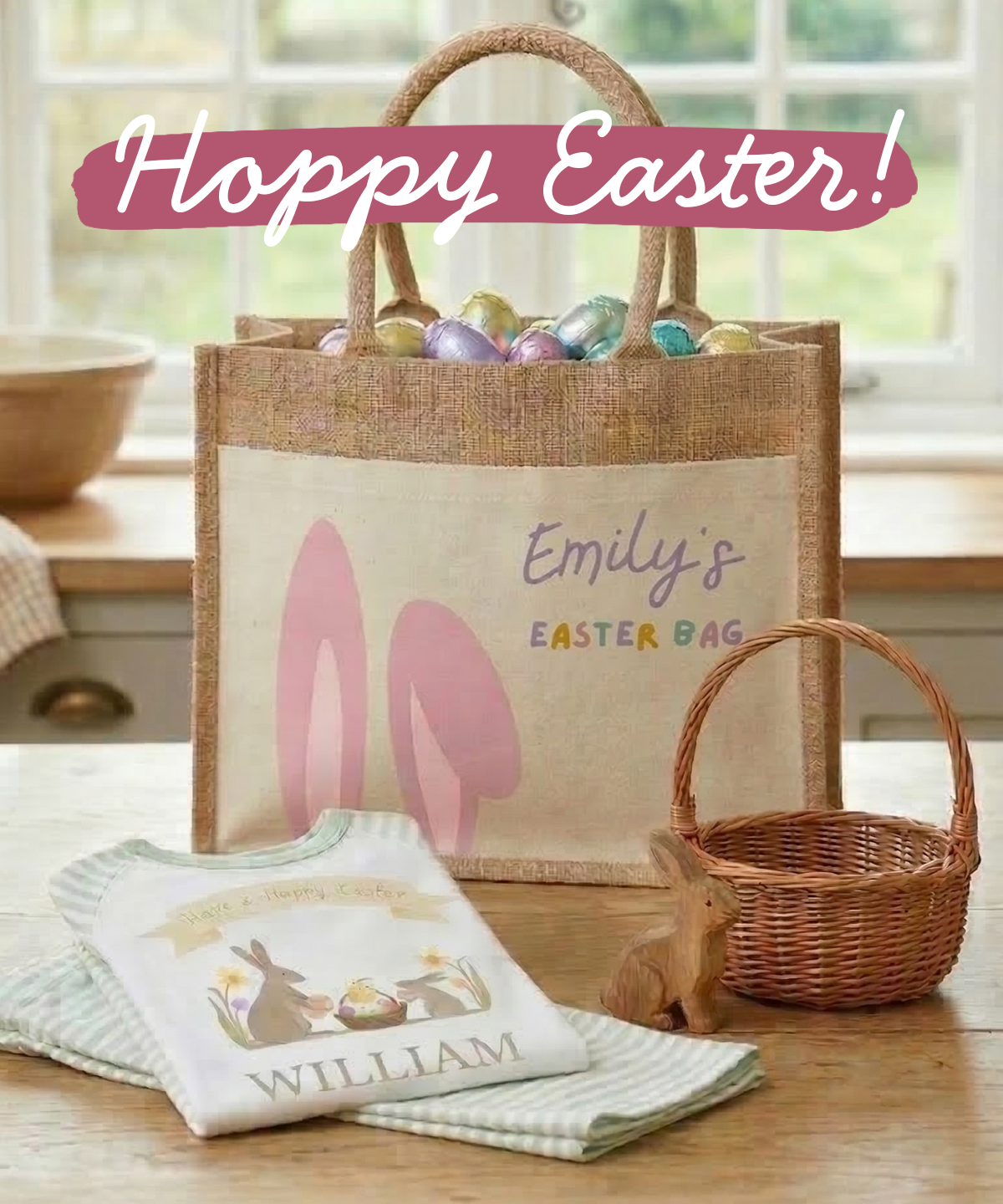Personalised Hessian Easter Bag - Adults & Kids Easter Egg Hunt Bags - Chocolate Egg Design