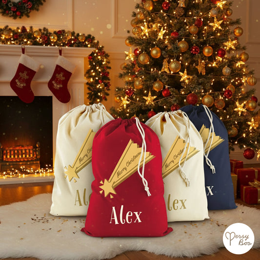 Personalised Holly Sack with Christmas Gifts 100% Cotton