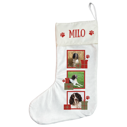 Personalised Pet Photo Christmas Stocking with Three Photos