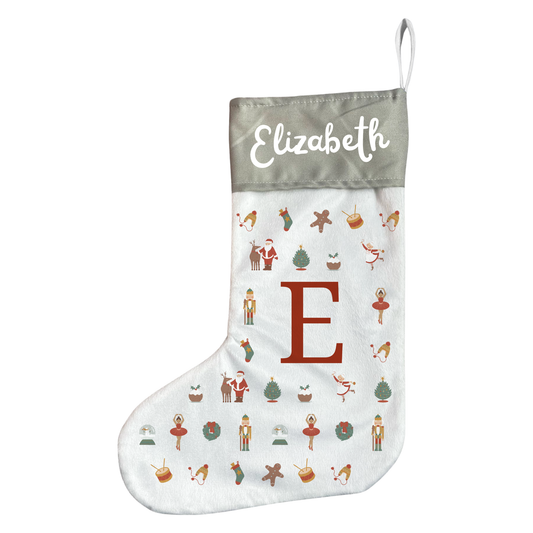 Personalised Christmas Stocking - Grey Scandi Wreath