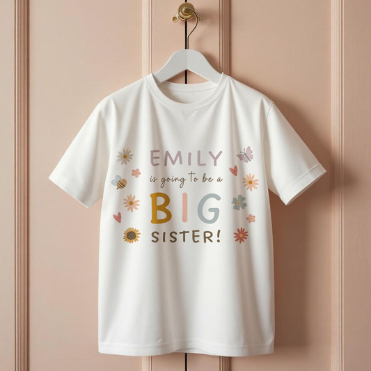 Personalised Big Sister Announcement T-Shirt - Pregnancy Reveal Top for Girls