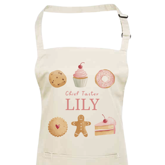 Personalised Baking Treats Apron - Chief Taster Name Apron - Unisex for Adults and Kids