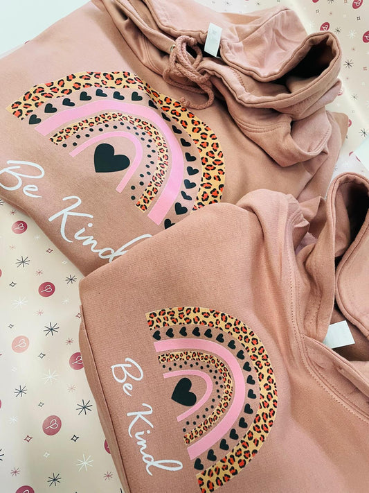 Dusty Pink Bee Kind Rainbow Hoodie - Kids