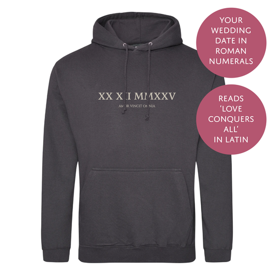Personalised Couples Hoodie - Wedding Date Roman Numerals Jumper - Matching His and Hers