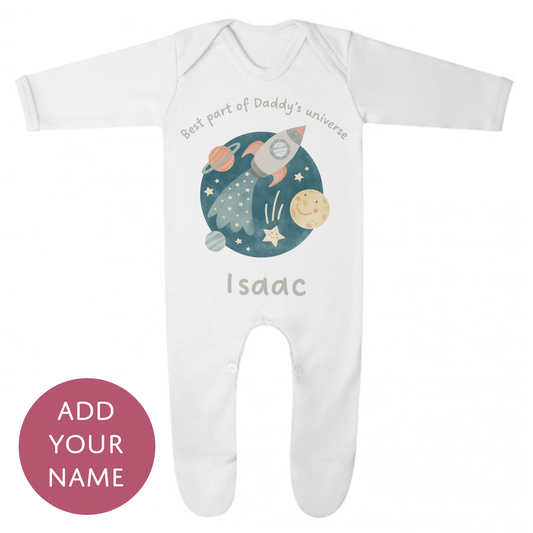Personalised Matching Universe Set - Daddy and Baby Tshirt and Babygrow - My First Fathers' Day Gift