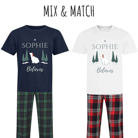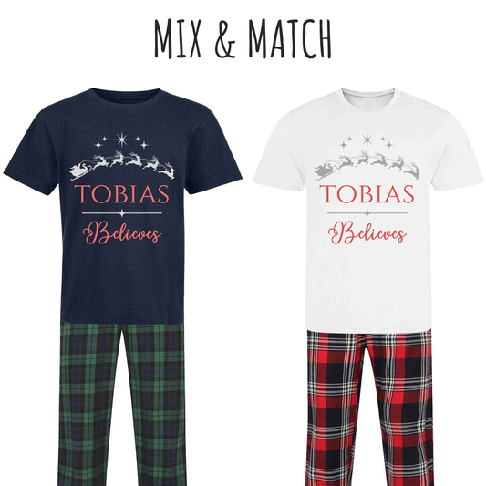 Personalised I Believe Family Christmas Pyjamas - Mix and Match Tartan Style