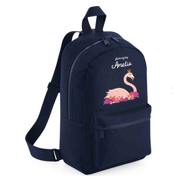 Brighten up every school day with our Personalised Kids Backpack – Flamingo Design. Featuring a playful flamingo print, this spacious backpack is personalised with your child’s name, making it a fun and practical essential for school, hobbies, or day trips.