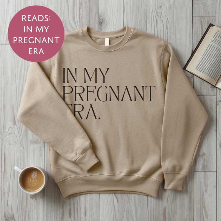 Embrace the glow, celebrate your journey, and wear your new title with pride. Add this “In My Pregnant Era” sweatshirt to your basket today and make this special season even more memorable!