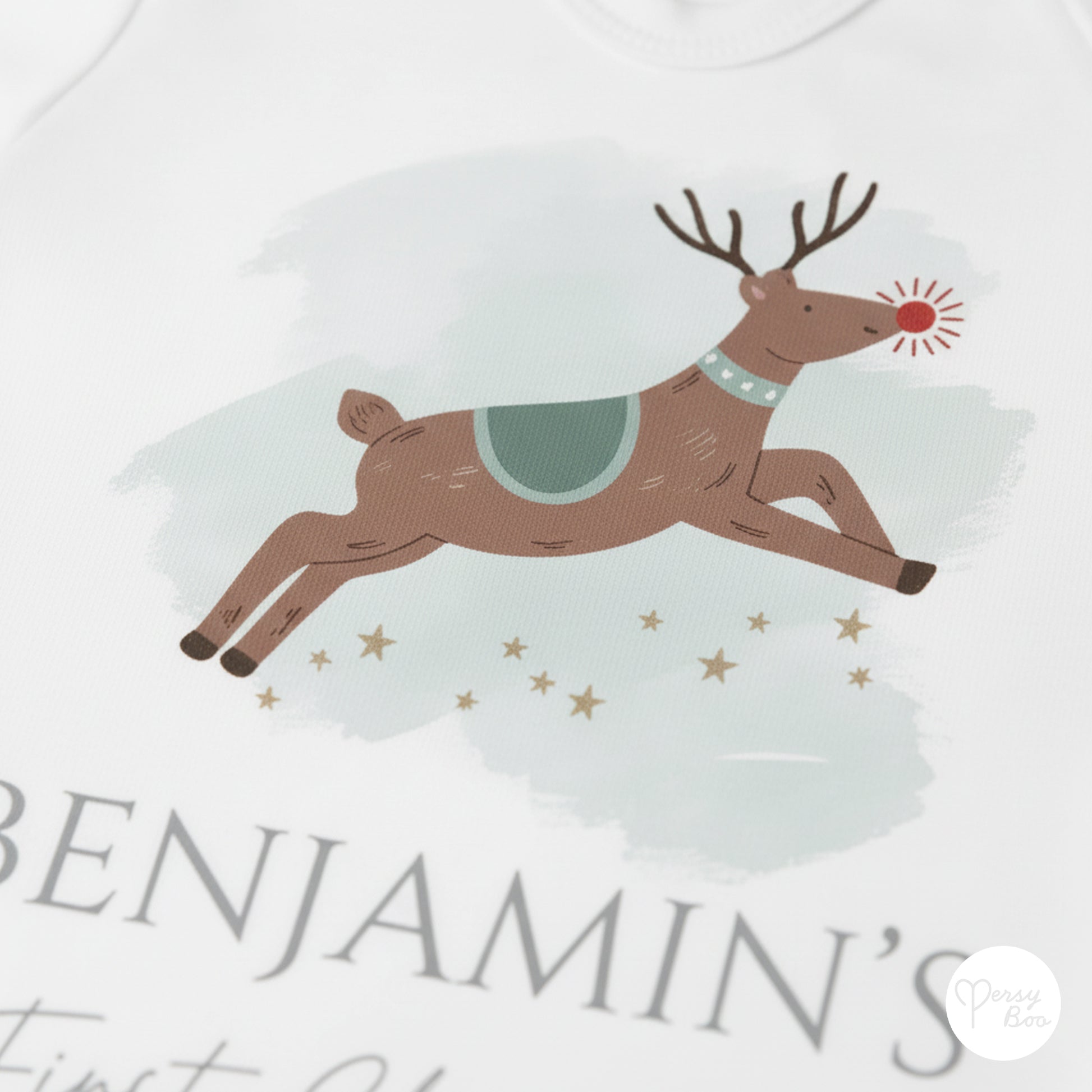 'My First Christmas' Reindeer Romper - Personalised Baby Grow - Christmas Pyjamas