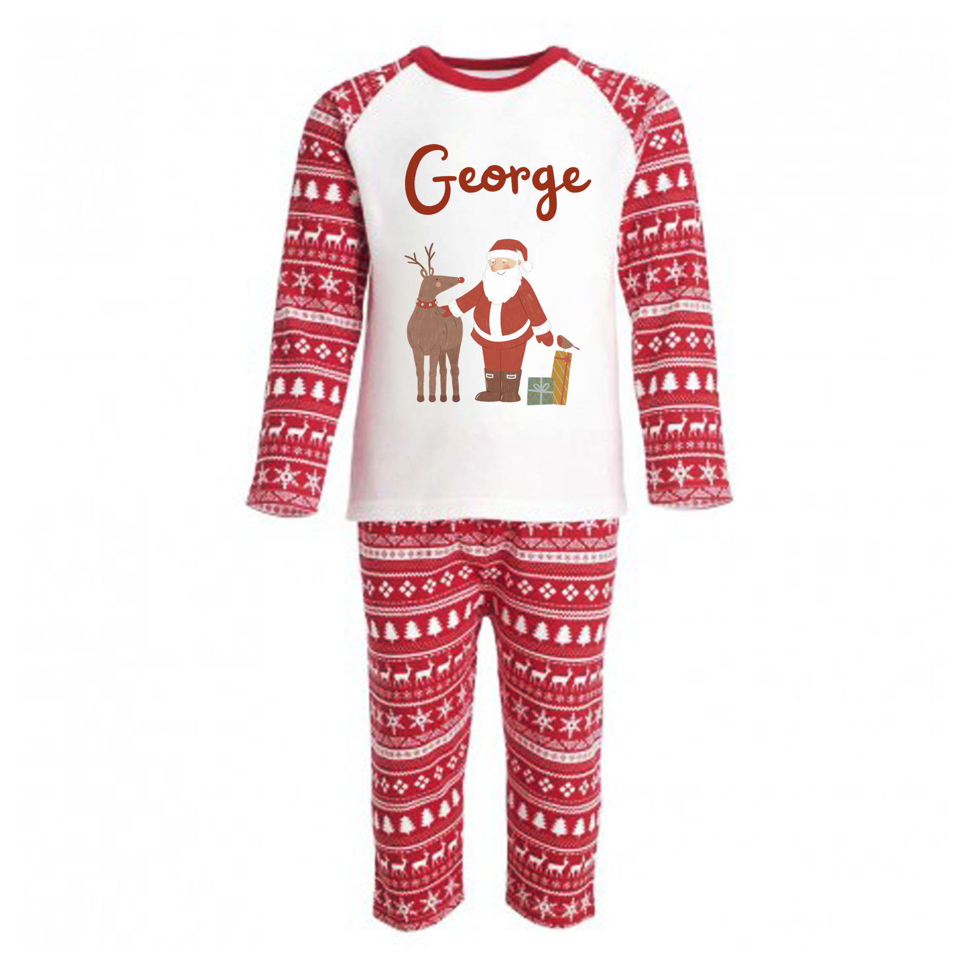 Personalised Christmas Santa and Rudolph Pyjamas - Kids and Adults - Unisex PJ Set