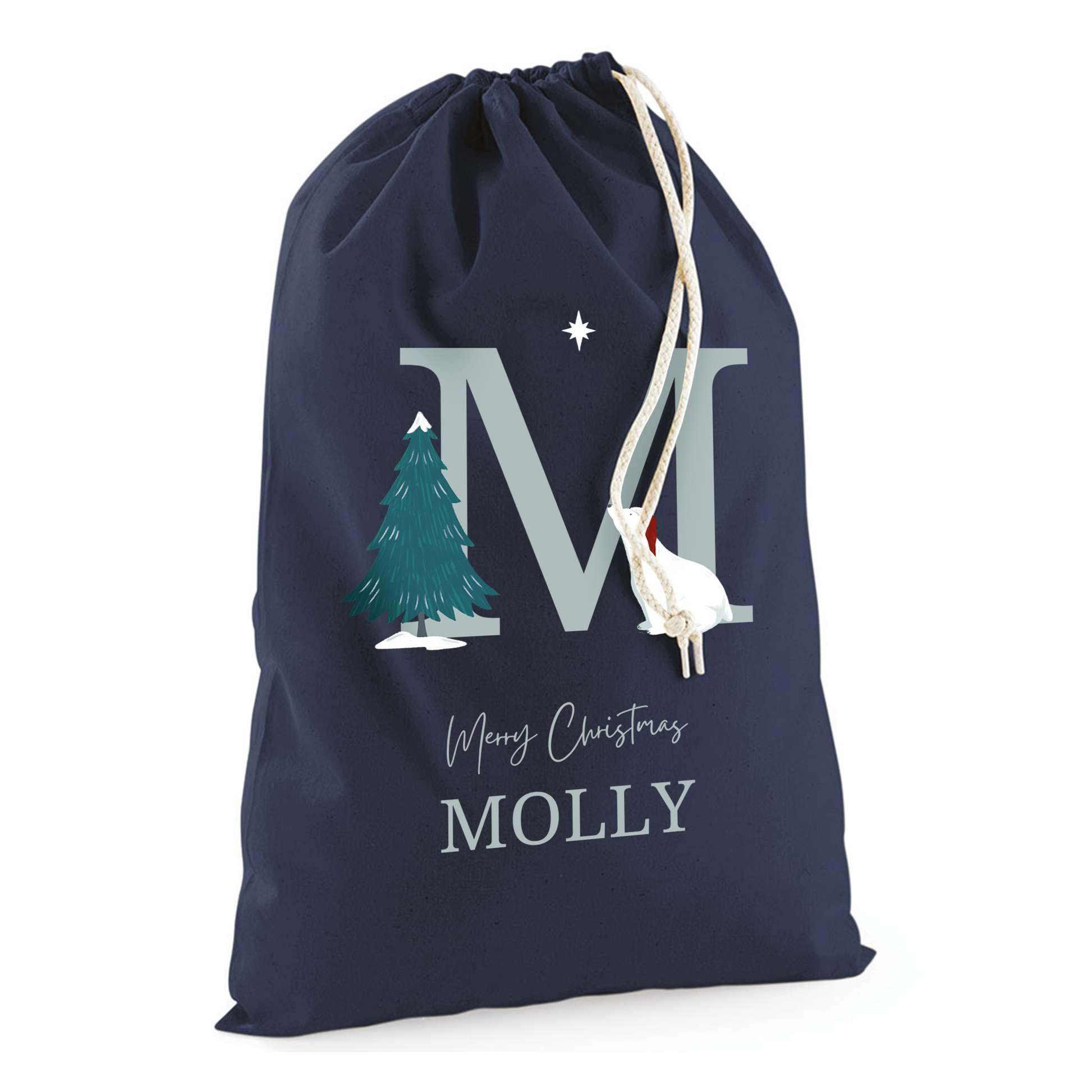 Personalised Polar Bear Sack with Name for Christmas Gifts – 100% Cotton