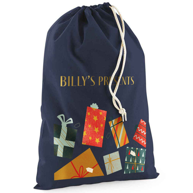Make Christmas extra festive this year with our gift box design Santa sack! Perfect for both kids and adults alike, these Christmas sacks come in a selection of sizes & colours to suit your Christmas present needs. It can be printed with any name and is printed directly into the cotton fabric using the latest DTG technology.