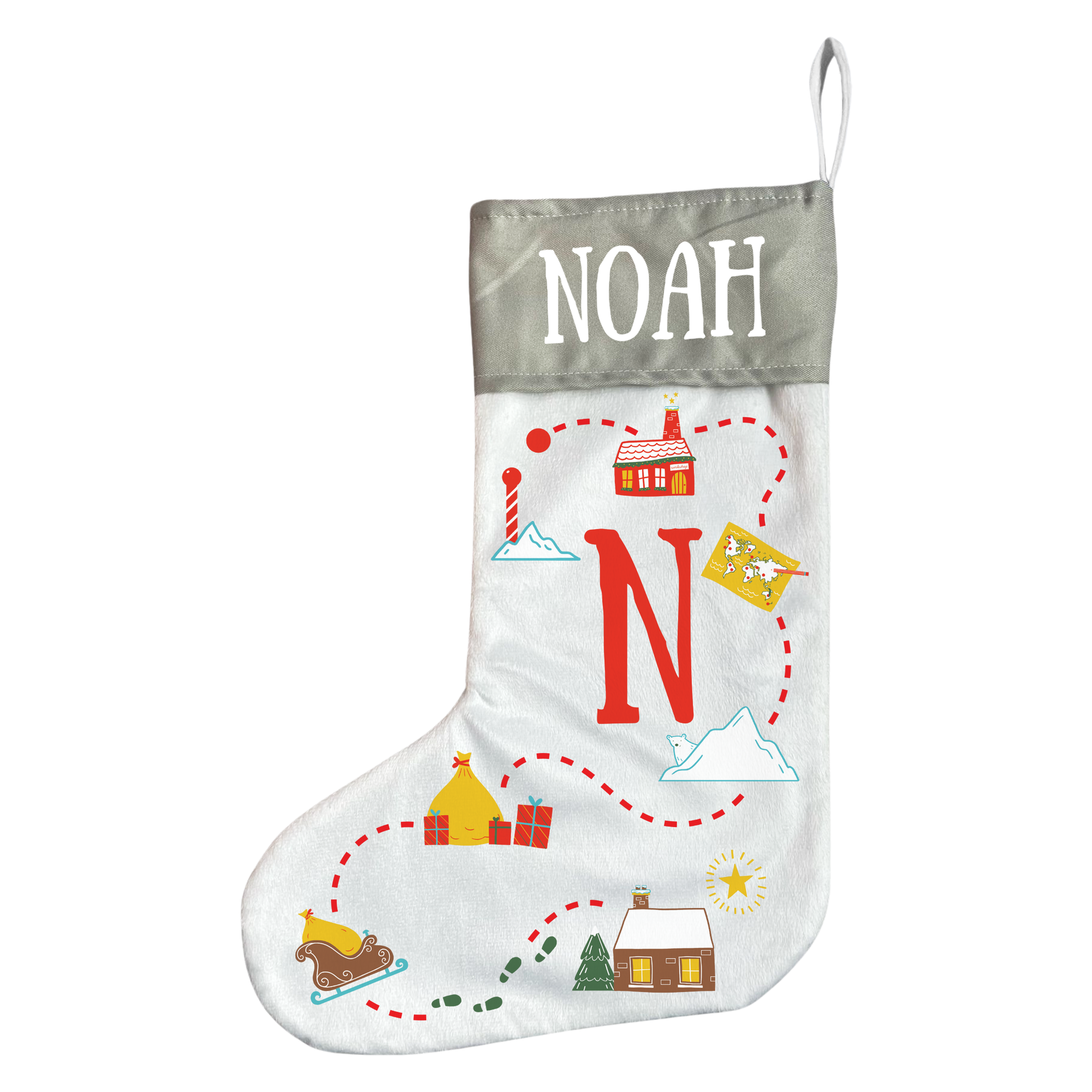 Bring the excitement of Santa’s journey into your Christmas celebrations with our Santa Tracker Stocking. Featuring a playful map-inspired design, this festive stocking captures the wonder of following Santa’s magical trip around the globe. Perfect for filling with small gifts, treats, and surprises, it adds a touch of adventure and holiday cheer to your fireplace décor. A unique keepsake to treasure year after year, it’s the perfect blend of festive fun and imagination.